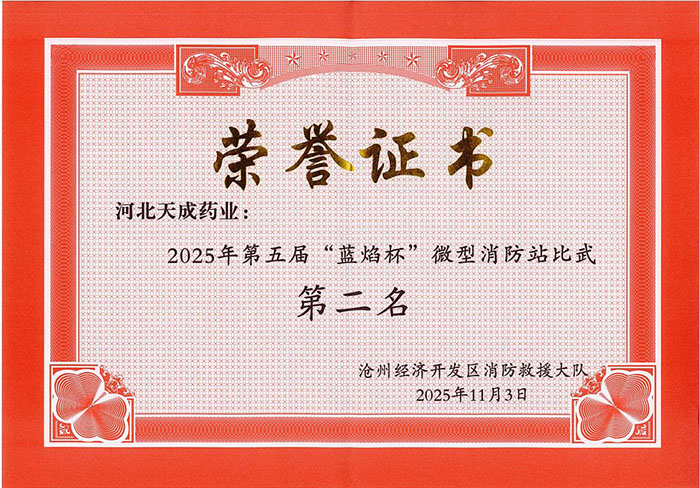 此次獲獎(jiǎng),既是一份榮譽(yù),更是一份責(zé)任。天成藥業(yè)將持續(xù)強(qiáng)化微型消防站的建設(shè)與管理,筑牢企業(yè)安全生產(chǎn)的“第一道防線”,為公司的穩(wěn)健發(fā)展保駕護(hù)航!